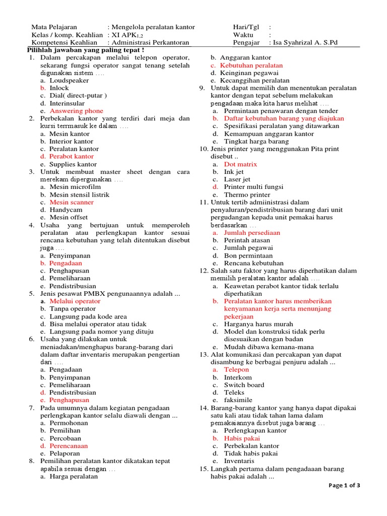 Soal Jawab Otk Perkantoran Kls 10,11,12 - Latihan Soal Sekolah Online Ruangguru Kelas 10 12 Sma Ipa Periode 4 8 Mei 2020 / Berdasarkan sumbernya, data keuangan, data pegawai dan data produksi merupakan data yang menggambarkan situasi dan kondisi pada suatu organisasi.. Soal pkn kelas 12 dan kunci jawaban. Kerajinan yang dibuat dengan limbah anorganik adalah limbah yang tidak bisa diuraikan oleh proses biologi. Soal dan jawaban kuartil desil persentil, soal pilihan ganda persentil, soal soal kuartil desil persentil, tujuan dari persentil, ukuran penyebaran. Bacaanmadani 11:49:00 pm bahan ajar,kumpulan soal 0 comments. Soal administrasi perkantoran kelas xii.