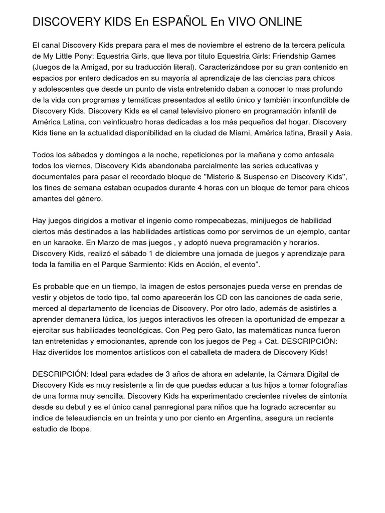 We provide version 5.28.0, the latest version that has sólo tienes que ingresar tu nombre de usuario y contraseña de tu proveedor de tv y tendrás acceso a cientos de episodios, juegos y actividades. Juegos de my little pony. Incluye también información útil para los padres. En discovery kids plus están los mejores dibujos para niños. Tu familia puede divertirse con capítulos completos de sus series favoritas, juegos interactivos, videos infantiles, clips musicales y un montón de contenido educativo para aprender jugando. Kids en accin, el evento. Equestria girls 4 comercial discovery kids español latino. Hoy traemos a ustedes un pack de juegos infantiles del sitio de discovery kids los cuales encuentras con idioma español, este pack puedes encontrar mas de 35 juegos de fácil ejecución, aqui encuentras juegos de todos los generos con los que tus hijos se entretendran en un momento. Todos los juegos de discovery kids gratis y el juego discovery kids 2. Una aventura increíble en el único continente virgen que nos queda. Disfruta esta nueva serie de go originales en discovery en español go. Ofrece a tus hijos la oportunidad de ver capítulos completos de sus series favoritas y disfrutar de las mejores actividades y juegos interactivos en la computadora, celular o dispositivo móvil, a cualquier hora y en cualquier lugar. Discovery kids juegos para niños, discoverykids: